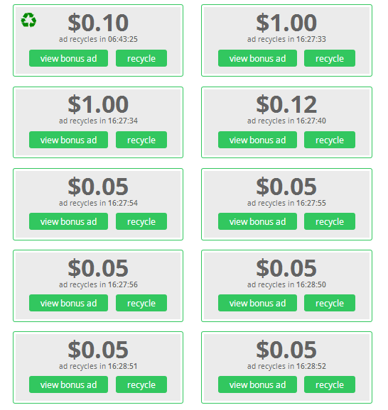If you don’t wish to click low-value ads such as $0.0005, you can recycle those ads. The recycled ads will be delivered to other members.